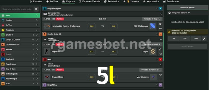 A aposta 5l oferece aos jogadores a experiência mais conveniente de apostas em eSports!